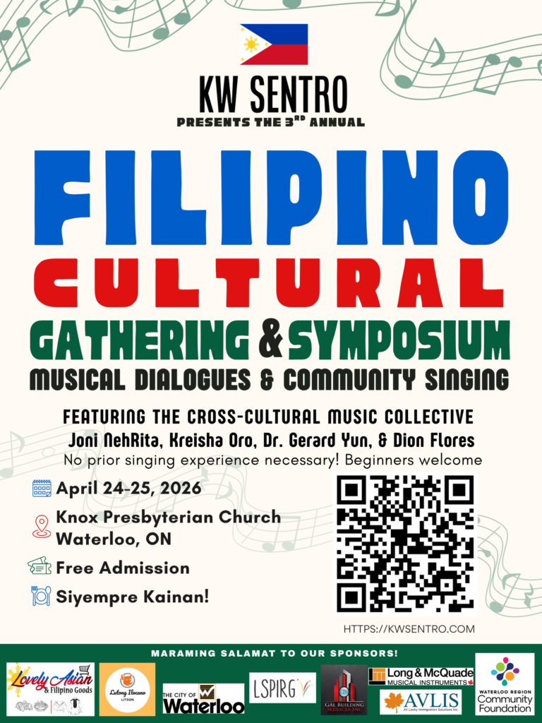 The 3rd Annual Filipino Cultural Gathering and Symposium is set to take place on April 24-25, 2026 at Knox Presbyterian Church in Waterloo, ON.